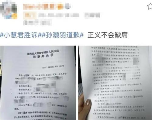北京時間10月20號,小慧君在微博發布文章稱“正義不會缺席”,配圖是兩份判決書的一部分內容。孫灝羽也向紅星新聞記者確認該判決的真實性,孫灝羽表示之前她一直在網絡上造謠,我氣不過就說了兩句。小慧君則是告訴紅星新聞記者說自己在前幾天已經收到了二審判決書,針對二審判決中法院不予認定的部分自己還會重新提起訴訟。