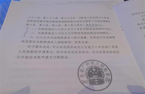 前湖北首富蘭世立因被刑事羈押限制人身自由902天,后被無罪釋放。蘭世立因此向廣州市人民檢察院申請國家賠償,目前賠償決定書已經送達。賠償決定書的內容顯示廣州市人民檢察院向蘭世立提供國家賠償人民幣591,074元。其中包括394,074.78元的人身自由賠償金,人民幣197,000元是精神損害撫慰金。廣州市人民檢察院還口頭向蘭世立進行賠禮道歉,為其恢復名譽消除影響。