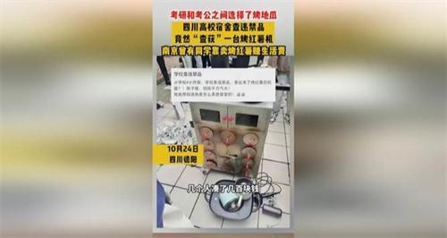 近日,四川高校輔導員和宿管查寢時,發現了一個十分特殊的設備,這個設備是烤地瓜機器。很多人都沒有想到高校竟然能夠查出烤地瓜機器的這個違禁品,很多網友紛紛表示在考公和考研之間選擇了烤地瓜。我們以前的輔導員和宿管查寢室,幾乎都能發現意外的東西,以前大部分學生都會使用加熱棒以及熱水壺等等畢竟去打水特別麻煩,有熱水壺和小電鍋等設備能夠解決很多不便,但是也存在著一定的安全隱患。