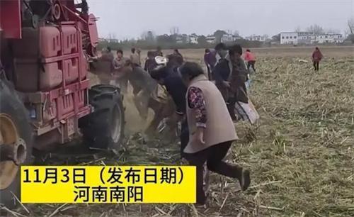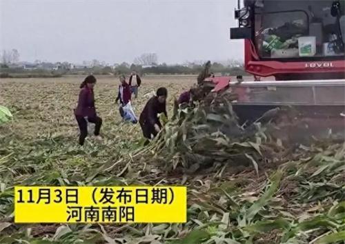 11月3日,河南南陽的網友發布視頻稱,收割機收割高粱的時候周圍的一些村民在旁邊撿拾高粱穗,從網友拍攝的視頻中顯示,一些人手持器具在收割機后面撿拾高粱,收割方還與這些撿拾高粱的村民發生了爭執。該報道中還提到,南陽鄧州市趙集鎮人民政府已經關注到此事,當地派出所也已經接到報警前往事發地進行處理。