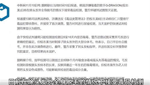 11月10日外媒報(bào)道,此前韓國(guó)涉嫌吸毒的歌手權(quán)志龍?jiān)诮战邮芏酒窓z測(cè)的時(shí)候,將全身除頭發(fā)之外的毛發(fā)全部脫毛,這一舉措不由得讓警方懷疑其是否在毀滅證據(jù),權(quán)志龍方面解釋稱,自己平時(shí)也主張全身脫毛,對(duì)此警方只能使用權(quán)志龍的頭發(fā)和手指甲來(lái)代替其他部位的毛發(fā)進(jìn)行毒品檢測(cè),目前正在等待具體的檢測(cè)結(jié)果出具。