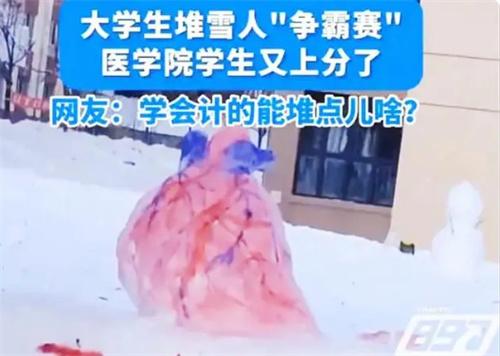 11月11日,黑龍江牡丹江迎來了一場東北堆雪人大賽,在這場獨具特色的雪人創作當中,一所醫學院的學生展現了醫學知識和雪藝創新的完美結合,他們利用周圍的雪花堆砌出了一系列具有醫學元素的雪人,這一幕引發了網友的調侃。