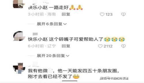 這位自稱是快樂小趙好友的男子在視頻中還表示,小趙去世的消息確實是真的,在這里想在評論區找一下當初在醫院照顧小趙的粉絲和網友,希望大家能夠在這里共同送小趙一程。據了解,網紅快樂小趙之所以能夠爆火,主要是因為他此前發布過一條乘坐公交的視頻,在這段視頻中公交上有很多的旅客吵鬧,影響了其他人的休息。所以小趙便對他們發出怒吼,斥責他們影響周圍的乘客,這段視頻在網上曝光之后,很多網友便稱贊小趙是一名公交紀律委員。