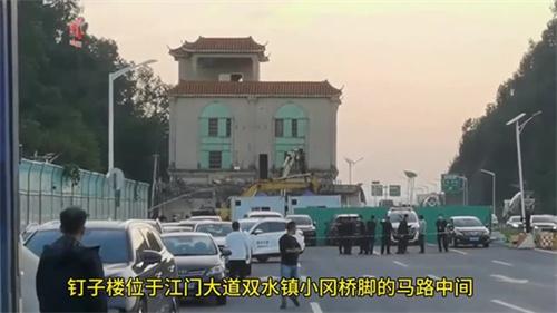 全國著名的江門市新會區雙水鎮小岡官堂村最牛的擋道釘子樓在11月14日被拆除。釘子樓的位置是在馬路中央,也是剩余最后一棟沒有拆除的別墅,據了解別墅征拆戶曾經提出比較高的補償訴求,一直以來都沒有達成共識進行簽約。隨著江門大道不斷的發展建設,周邊的樓房陸續的拆遷辦理,使這棟別墅直接孤零零的矗立在兩側修建的公路旁邊。