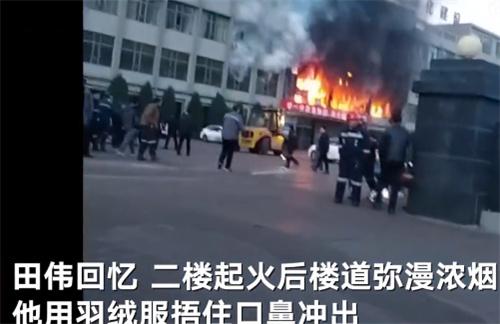 據田偉回憶這個時間正值工人上井下井的交班期間,當時有上晚班的人還有上早班的人,田偉是在4樓開會2樓是工人的更衣室和澡堂,工人會把打火機、手機、香煙等物品放在更衣室。根據田偉回憶2樓起火之后,樓道里面開始彌漫濃煙,就用羽絨服捂住了自己的口鼻趕緊往外跑,不到一分鐘的時間就沖到了樓外,這個時候,有人開始拿水管沖到2樓起火的樓層,還有人為了能夠逃生直接從樓上跳下來,五六分鐘之后救援人員就到來。