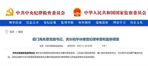 11月20日,中央紀委國家監(jiān)委網(wǎng)站發(fā)布通報稱,廈門海關(guān)原黨組書記柏華冰涉嫌嚴重違法違紀,目前正在接受中央紀委國家監(jiān)委牽頭的監(jiān)察調(diào)查。根據(jù)公開簡歷顯示,柏華冰是1957年三月份出生,2014年一月份開始擔任廈門海關(guān)關(guān)長和黨組書記的職位,2017年的三月份柏華冰正式退休,近日于退休六年之后被查。