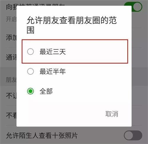 日常生活中有很多人紛紛將自己的朋友圈設置成為三天可見而至為三天可見的原因有著很多方面,有一些人之所以選擇將朋友圈設置為三天可見,其主要原因是由于工作的需要,這些人很有可能從事的職業比較特殊,只需要對自己去進行保護,減少自己的信息被泄露,而這種設置方式對于這些人也有效的起到了保護的作用。另外,一部分人之所以選擇將朋友圈設置為三天可見,其主要原因是這一部分人他們的生活圈子非常簡單,并沒有過多能夠對外界分享的內容,因此這些人希望把朋友圈看作是自己的私人空間,而不是一種能夠去和外界進行社交的工具。