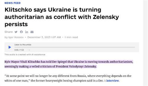 北京時間12月03日,根據烏克蘭的媒體報道,烏克蘭首都基輔的市長維塔利·克利欽科在近段時間接受德國媒體的采訪的時候表示,烏克蘭現在正在逐漸的變成一個專制國家,現在烏克蘭的國家已經和俄羅斯國家沒有太大的區別了,認為現在的烏克蘭國家是一個人說了算,就如同俄羅斯有普京說了算一樣的,他的這一番話語疑似在指桑罵槐,可能罵的就是烏克蘭的總統澤連斯基。