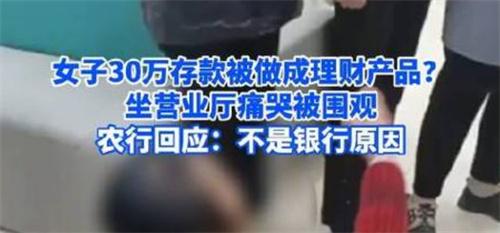 在北京時間的12月5日,網上傳來消息稱位于四川省的綿陽市,有一位女子在農業銀行存了30萬元存款,但是等這位女子去取款時,卻顯示存款無法取出的事情,這件事情在網絡曝光之后,便立刻引發了社會各界的多方關注。這起事件里面的當事女子質疑自己存的這30萬元存款之所以無法取出,其主因是農行直接用自己所存的這筆存款轉做理財產品了,就在網友們對這起事件熱切討論之時,當地農行對這起事件也給出了公開的回應。當地農行的工作人員表示,這件事情的具體情況和網上傳出的消息有著很大的出入。