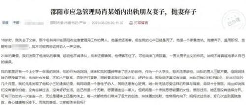 在今年的8月份,在湖南省的邵陽(yáng)市有一位公職人員因?yàn)槌鲕?,被自己的親生兒子給舉報(bào)了,這起事件在網(wǎng)上傳開(kāi)之后,也立刻引發(fā)了社會(huì)各界的多方關(guān)注。在這起事件的話題討論度越來(lái)越高,隨著越來(lái)越多的網(wǎng)友們對(duì)這起事件進(jìn)行監(jiān)督,北京時(shí)間的12月12日,邵陽(yáng)市應(yīng)急管理局政務(wù)科也對(duì)外公布了對(duì)這位公職人員的處罰。