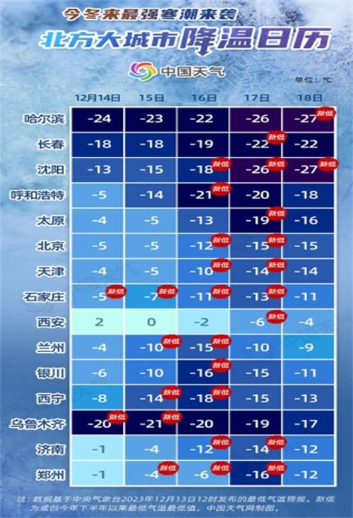 北京時間12月13號,根據(jù)中國天氣網(wǎng)發(fā)布的消息稱,今年入冬以來最強(qiáng)的寒潮目前已經(jīng)啟動,這一次的很長時間將會持續(xù)到12月16號,而且寒潮的目標(biāo)將會從西方往東方,從北方往南方的方向去進(jìn)行,我國部分城市的氣溫下降程度可能會有14℃左右。對于一些北方城市來說,這一次氣溫下降,有可能會突破所在城市的一個極值,而南方地區(qū)極有可能會出現(xiàn)氣溫大幅度的下降,在此要提醒所有的市民朋友們,一定要做好防寒保暖。
