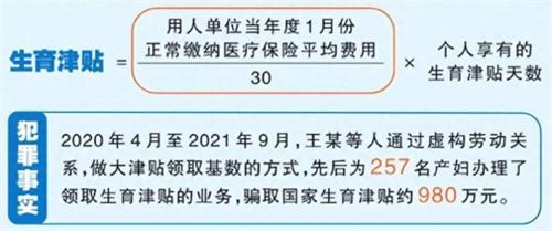 后續(xù)在相關(guān)中介的參與之下,從2020年四月份到2021年九月份,王某等人先后通過虛構(gòu)勞動(dòng)關(guān)系合作大津貼領(lǐng)取基數(shù)的方式,為257名產(chǎn)婦辦理了生育津貼領(lǐng)取業(yè)務(wù),總共騙取國(guó)家生育津貼大約980萬(wàn)元。