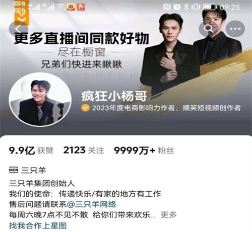 在大學(xué)期間,兩人已通過短視頻賺的盆滿缽滿,甚至在河北租了房子,將自己的父母接到浙江一起生活,2021年三只羊。科技有限公司正式成立,2021年9月,瘋狂小楊哥開啟抖音電商直播。第一場直播銷售額達(dá)30萬元,隨后他的直播間銷售額迅速提高,人氣也隨之而飆升。