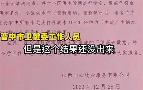 該小區的物業曾發布了相關的通告,表示已經對小區的自來水進行了停水,同時對蓄水池進行了清洗和消毒。有記者采訪到了這個小區的自來水供應公司,工作人員則表示公司自來水經過檢測是合格的,問題是有可能出現在了小區的二次供水系統上?,F在這個小區的自來水已經被采樣送到相關部門檢測,還剩下最后一項檢測報告還未出現。小區的物業人員表示,檢測結果出來之后會直接向公眾進行通告,同時表示,小區每隔半年的時間就會邀請專門的清洗團隊來清洗水箱,上一次清洗水箱是在今年8月份。