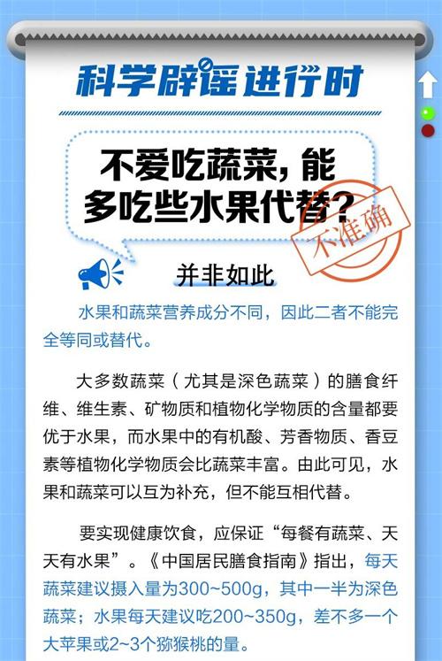 近段時(shí)間,在社交平臺上出現(xiàn)了一則關(guān)于不愛吃蔬菜能多吃水果進(jìn)行代替的傳聞,引發(fā)了許多網(wǎng)友的關(guān)注和討論。隨后官方進(jìn)行辟謠,稱這個(gè)說法是錯(cuò)誤,水果和蔬菜的營養(yǎng)成分是不同,二者不能夠等同和替代。經(jīng)常吃水果和蔬菜對身體是有一定的好處的,能夠補(bǔ)充我們身體所需要的維生素,對于不愛吃蔬菜水果的人,身體最容易缺乏維生素和礦物質(zhì)。