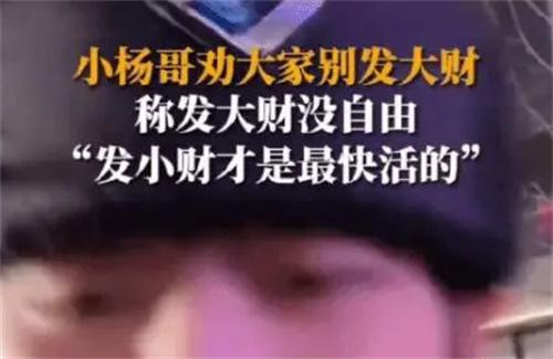 在這個物欲橫流的時代中,每個人都想變成財富自由的人,都在成為有錢人的路上奮斗不止,希望有一天能夠實現這個理想,過著富足的生活。知名爆火的網紅小楊哥通過親身經歷向網友坦白,發大財真沒有想象中那么好,人一定要學會知足,享受小財所帶來的開心。這樣的言論無疑會引起激烈討論,也讓人們陷入深思,人這一生所追尋的是不是無窮無盡的財務?