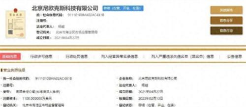 據1月8日報道,近日關于女高管將消違法開除,背后的公司是北京尼歐克斯科技有限公司,該公司究竟有什么來頭?據國家企業信用信息公示系統顯示北京尼歐克斯科技有限公司于2021年4月27日成立,屬于臺港澳法人獨資有限責任公司,注冊資本是1100萬美元,楊越是法定代表人。