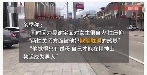 吳謝宇的父系有精神家族史,同時,吳謝宇有精神異常時,曾經(jīng)多次想要自殺案發(fā)時,吳謝宇的精神是不太正常,有精神病不能完全辨別自己的行為性質(zhì)作用以及會產(chǎn)生的后果,所以不具備完全的刑事責任能力。根據(jù)吳謝宇的自述,從2014年下半年,他表示把自己逼到了一個臨界點,每天都在掙扎無盡的痛苦,覺得自己好累好痛苦,一點力氣也沒有,便產(chǎn)生了自殺之念。吳謝宇在2014年在北京市五道口一座大廈上英語培訓班,每周兩次課,而每次下課都到晚上9點多,這時候的吳謝宇都會跑到大廈18層,想像張國榮一樣從18樓跳下來來結(jié)束自身的痛苦。