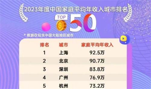 這張圖片在18日下午經(jīng)過一位微博大V的轉(zhuǎn)發(fā)引起了人們的關(guān)注,圖表中表明,上海市家庭平均年收入為92.5萬元,排名第二的北京市為90.7萬元,排名第三的深圳為83.8萬元,排在圖表末位的是50名的臺州,家庭年收入20.6萬元。引起關(guān)注后不少網(wǎng)友都跟風(fēng)表示給自己的城市拖后腿了,也有人稱,這種統(tǒng)計數(shù)據(jù)當(dāng)個笑話看就行了。