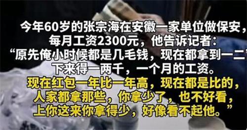 有記者采訪了安徽的普通居民,據了解該居民在當地做保安,一個月工資2300元,他表示每年過年,自己給孩子們發壓歲錢時,確實特別令人頭疼。因為家里需要用錢的地方特別多,每年發完壓歲錢,基本就剩不下多少。