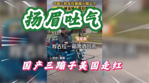 三蹦子之所以能在國(guó)外火,起源是一位在美國(guó)生活的中國(guó)博主,托自己的朋友,幫忙從國(guó)內(nèi)買(mǎi)了一輛電動(dòng)三輪車(chē),并把這輛三輪車(chē)送給了自己在美國(guó)的公公。據(jù)了解這種電動(dòng)車(chē)在美國(guó)是可以合法上牌的,而且因其燈光閃耀、音樂(lè)高調(diào),還被許多美國(guó)人注意,當(dāng)他們?cè)儐?wèn)渠道時(shí),才知道是從中國(guó)買(mǎi)來(lái)的,于是眾多美國(guó)友人也開(kāi)始詢(xún)問(wèn)鏈接,要從網(wǎng)上購(gòu)買(mǎi)“炸街”神器。三蹦子便實(shí)現(xiàn)了爆火。