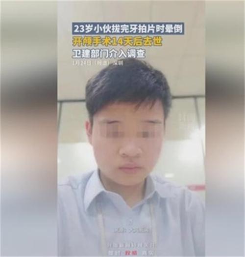 近日,一剛剛23歲的小伙子在拔牙拍片時(shí)暈倒,在做完開(kāi)顱手術(shù)14天之后,這位小伙子竟然不幸的去世。年輕小伙的去世讓家人感覺(jué)到萬(wàn)分的痛苦,也對(duì)于小伙去世的原因產(chǎn)生了深深的懷疑。據(jù)醫(yī)院對(duì)這位小伙子所出示的鑒定結(jié)果內(nèi)容顯示,導(dǎo)致他死亡的主要原因是由于自發(fā)性的顱內(nèi)出血。但是小伙的家人對(duì)于這起鑒定結(jié)果卻并不認(rèn)定,并直接將此事投訴到了衛(wèi)健部門(mén),衛(wèi)健部門(mén)在接到投訴之后,已經(jīng)介入調(diào)查。