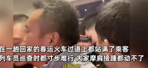 2月3日最新消息,春運期間的火車客車車廂內人滿為患,乘客密密麻麻站滿了過道,形成了擁擠的場面,列車員在這樣的擁擠環境中巡查時也寸步難行。這一場面引起了廣大網友們的討論。