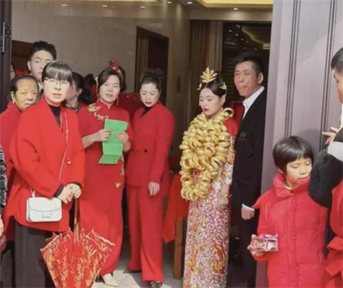 前面可能是小菜一碟,但新郎出場以后卻贏得了所有人的關注,新娘脖子上百個龍鳳鐲,幾十個迎親隊伍浩浩蕩蕩的,每個人肩膀上挑的屁里可以媲美古代的十里紅妝,每個人看了這豐厚的嫁妝都眼熱。除此以外,這場婚禮也聘請了專業的團隊,精彩的演出搭配古典式的舞蹈簡直比看電視劇還精彩。