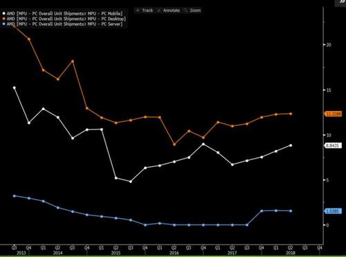 我們覺得這是后者,我們看到供應商試圖重新獲得優勢的新生跡象。如果來自英特爾(INTC - 獲取報告)和高級微設備(AMD - 獲取報告)的新服務器CPU 獲得牽引力,我們也會看到數據中心需求恢復的可能性。