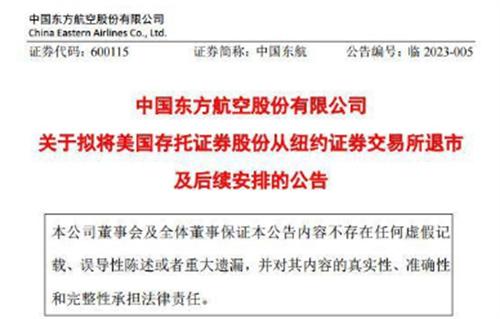 2023年的1月13日,中國東方航空公司和南方航空公司都發布了公告,目前兩家公司已經向美國證券交易所自愿申請了存托證的退市申請,兩家公司在A股港股和美股都是上市的公司,之所以兩家公司從紐約證券交易所退市,是因為目前公司的主要業務都在A股和港股上,此次的退市對于公司不會造成太大的影響。