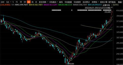 在1月26日,騰訊的股價就突破了400元的大關,在1月27日騰訊股票繼續走強,漲幅達到了2%每股價格達到了416.6港元,這一上漲幅度創下近11個月以來的最高水平,和去年10月份相比,騰訊的股價只有198.6港元的累計反彈已經達到了109%,由于國內新冠疫情的影響,2022年第四季度騰訊的收入增長仍然面臨著比較大的壓力,在2023年疫情防控政策做出改變之后,各個視頻號的商業化加速以及各類新游戲的陸續上線,騰訊公司將會出現業績爆發式的增長。