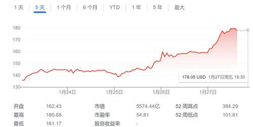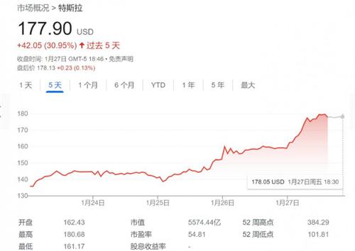 2022年對(duì)于特斯拉來(lái)說(shuō)可謂是災(zāi)難性的一年,2022年特斯拉的市值縮水了65%在特斯拉發(fā)布2022年年度報(bào)告之后,該公司的股票出現(xiàn)了大幅度的上漲在1月27日特斯拉的股價(jià)上漲幅度創(chuàng)下了近10年以來(lái)的最大漲幅,在本周特斯拉的股價(jià)上漲累計(jì)已經(jīng)達(dá)到了33%,目前特斯拉的股價(jià)已經(jīng)達(dá)到了177.9美元,上漲幅度達(dá)到了11%,這是自從2022年12月9日以來(lái)的最高股價(jià)和2023年1月3日的108.1美元上漲了65%。