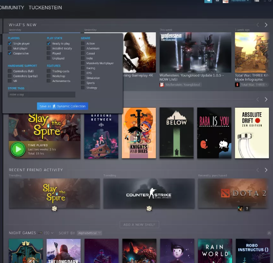 在某些方面,重新設(shè)計(jì)讓我想起了Gog的Galaxy 2 beta ; 像Galaxy一樣,Steam添加了“架子”的比喻,新版本也旨在將信息整合到更多可掃描的塊中。我喜歡Collections的想法,特別是基于自動(dòng)更新的動(dòng)態(tài)集合,雖然我真的希望能夠通過(guò)不同的功能進(jìn)行過(guò)濾 - 例如,Steam Cloud支持是一個(gè)很大的支持,特殊功能也是如此像HDR或DXR支持和系統(tǒng)要求(它可以在馬鈴薯上運(yùn)行嗎?),雖然后者可能不是很多人的大需求。