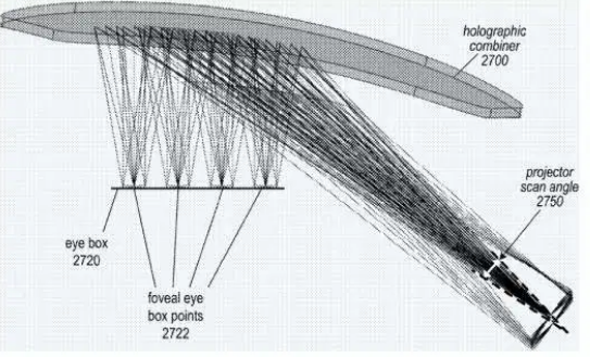 盡管該應用程序的技術細節很復雜,但這項創新似乎是一種投影儀,它將多個微小的光束投射到鏡頭上,從而形成了可以在特定“眼罩”區域內看到的全息圖。與插入鏡頭中的平面屏幕不同,投射的全息圖似乎具有多個視場,因此具有與用戶的眼睛和周圍環境都匹配的三維深度。