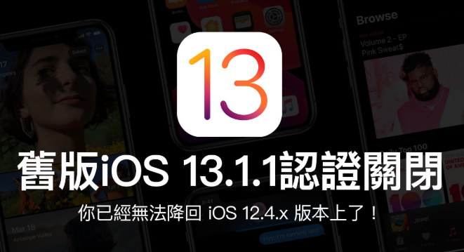 iOS 13正式版自從在9月20日推出后,直到今天蘋果才正式關閉iOS 13.1.1以下舊版本認證,將iOS 12.4.1、iOS 12.4.2、iOS 13.0、iOS 13.1.1認證關閉,比較奇特是還保留住iOS 13.1以及iOS 13.1.2認證,這也會造成如果想要降回舊版iOS 12的用戶已經無法透過iTunes降回去了!