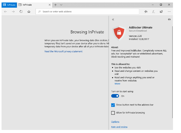 在InPrivate瀏覽模式下啟用擴展相對容易,但是只能在Windows 10 build 17074或更高版本上啟用。該功能當前僅在最新的Windows 10 Insider Builds中可用,但在下次功能升級中將對整個Windows 10人群可用。微軟計劃在2018年3月/ 4月發布它。