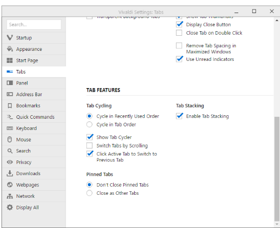請注意,Viv??aldi已經以Ctrl-Tab選項卡切換器快捷方式的形式集成了類似的功能,默認情況下將按激活順序在選項卡之間循環。