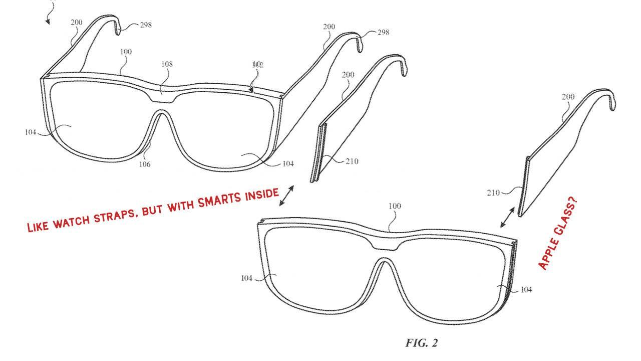 蘋果公司針對“頭戴式設備的模塊化系統”的未來計劃在公布給美國專利商標局的一項新公開專利中得以披露。美國專利商標局向發明人Paul X Wang和Dinesh C Mathew展示了該文件,該文件于2019年4月首次提交。這可能指向蘋果最終發布的一對設計語言。充滿增強現實功能的智能眼鏡,被稱為Apple Glass。