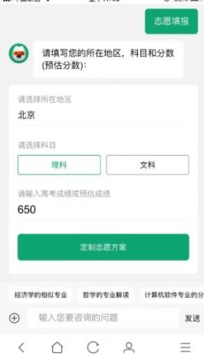 “搜狗高考志愿君”的使用方法非常簡單。考生在搜狗搜索APP中輸入關鍵詞“高考志愿填報”,即可在搜索結果中看到該工具。這時,考生只需在根據自身實際情況選擇“城市”、“科目”,再輸入高考分數或預估分數就能進入“搜狗高考志愿君”的對話頁面,獲得“定制志愿填報建議”。
