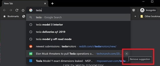 當你將鼠標懸停在某個條目上方的時候,Omnibox 會在界面右側(cè)顯示一個“×”記號 —— 輕點鼠標即可完成操作、無需再使用繁瑣的組合鍵。