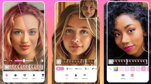 這意味著用戶可以使用用于皮膚平滑,牙齒增白和臉部整形的工具,以及眼睛的顏色,化妝,遮蓋,發(fā)光和遮罩功能來修飾臉部。此外,用戶可以調(diào)整其他常規(guī)視頻編輯工具,例如調(diào)整亮度,對比度,顏色等,就像其他視頻編輯應用程序所允許的那樣。這些編輯可以實時應用,以查看它們在視頻播放時的外觀,而不是事后。