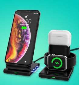 左側模塊(如上圖所示)具有高達10W的Qi標準無線充電支架,支持QC 2.0 / QC 3.0適配器(9V,1.67A),而右側模塊具有有線基座,用戶可以在其中輕松放置蘋果機手表和AirPods同時充電。