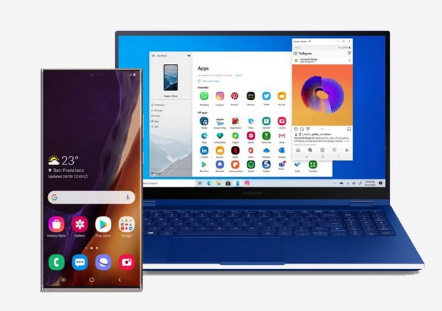 微軟推出的能力,安裝在Android手機上通過在八月電話應用回在Windows 10計算機上訪問應用程序。它與新的Note 20系列一同發布,其中包括更深的“鏈接到Windows”集成。