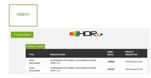 OPPO正準(zhǔn)備推出Reno4系列智能手機(jī)的后續(xù)產(chǎn)品。即將推出三種型號: Reno5,Reno5 Pro和Reno5 Pro Plus。在TENAA上市后,“ Pro”模型現(xiàn)已出現(xiàn)在HDR10 +規(guī)范中。根據(jù)清單,PDSM00和PDST00均顯示為“ Reno5 Pro 5G”,確認(rèn)了該設(shè)備的綽號和5G支持。