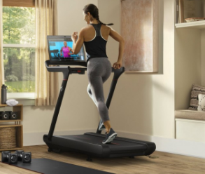 售價(jià)$ 2,495的Tread具有與Bike +相同的屏幕,但它不會(huì)旋轉(zhuǎn)。您只能在跑步機(jī)上上下傾斜以調(diào)整視圖。它也是比Tread Plus較小的機(jī)器,Peloton將其描述為比大多數(shù)長68英寸(長)x 33英寸(寬)x 62英寸(高)的沙發(fā)小。
