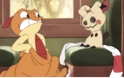 在四分鐘的短片 “追豆”明星口袋怪獸凹凸不平(#559神奇寶貝 黑與白,Zuruggu在原日本)和風扇喜愛Mimikyu(#778,神奇寶貝太陽和月亮)。這兩個生物在火車上都有一個活生生的爭斗,貓鼠滑稽動作明顯受到了Bugs Bunny和Elmer Fudd或Tom and Jerry等人的啟發(fā)。圓潤的表情人物設計,F(xiàn)leischer風格的“彈跳”動作,彩色背景以及甚至1930年代的音樂和聲音效果,都使觀眾期望豬肉豬在任何時候都能從Pokéball中彈出。
