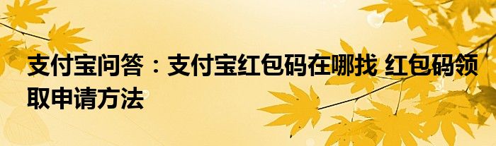 以上就是支付寶問答:支付寶紅包碼在哪找,紅包碼領取申請方法的推薦,相信通過支付寶問答:支付寶紅包碼在哪找,紅包碼領取申請方法這篇文章能幫到你,也歡迎對游戲很感興趣小伙伴們一起來探討。