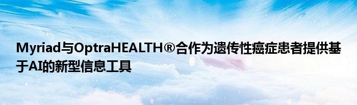 鹽湖城,2020年7月6日(GLOBE NEWSWIRE) -無數的遺傳學公司(NASDAQ:MYGN),在分子診斷和精密醫學的領導者,今天宣布與OptraHEALTH一個新的合作®實施名為基因認知聊天機器人™ 向潛在患者提供遺傳和經濟援助信息。Gene是具有AIPA的,符合HIPAA要求的知識平臺,具有BOT界面,可進行遺傳健康,并且可以回答有關遺傳性癌癥的500,000多個健康相關問題。Gene與Myriad市場領先的在線遺傳性癌癥測驗相銜接,現在每年約有100萬人參加。
