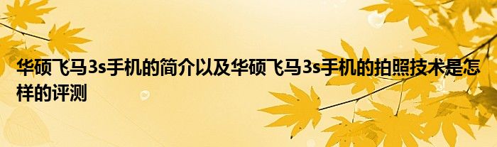 今天小編婷婷姐給大家整理小關于華碩飛馬3s手機的簡介,華碩飛馬3s手機的拍照技術是怎樣的,希望對大家有多幫助哦。