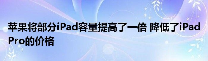 最近小茹姐發(fā)現(xiàn)蘋果將部分iPad容量提高了一倍,降低了iPad Pro的價(jià)格這個(gè)話題相信很多小伙伴們都很感興趣吧,那么今天就帶大家了解下蘋果將部分iPad容量提高了一倍,降低了iPad Pro的價(jià)格的具體詳情,那么小茹姐就來給大家說說具體的一些問題吧,希望對(duì)大家有所幫助。